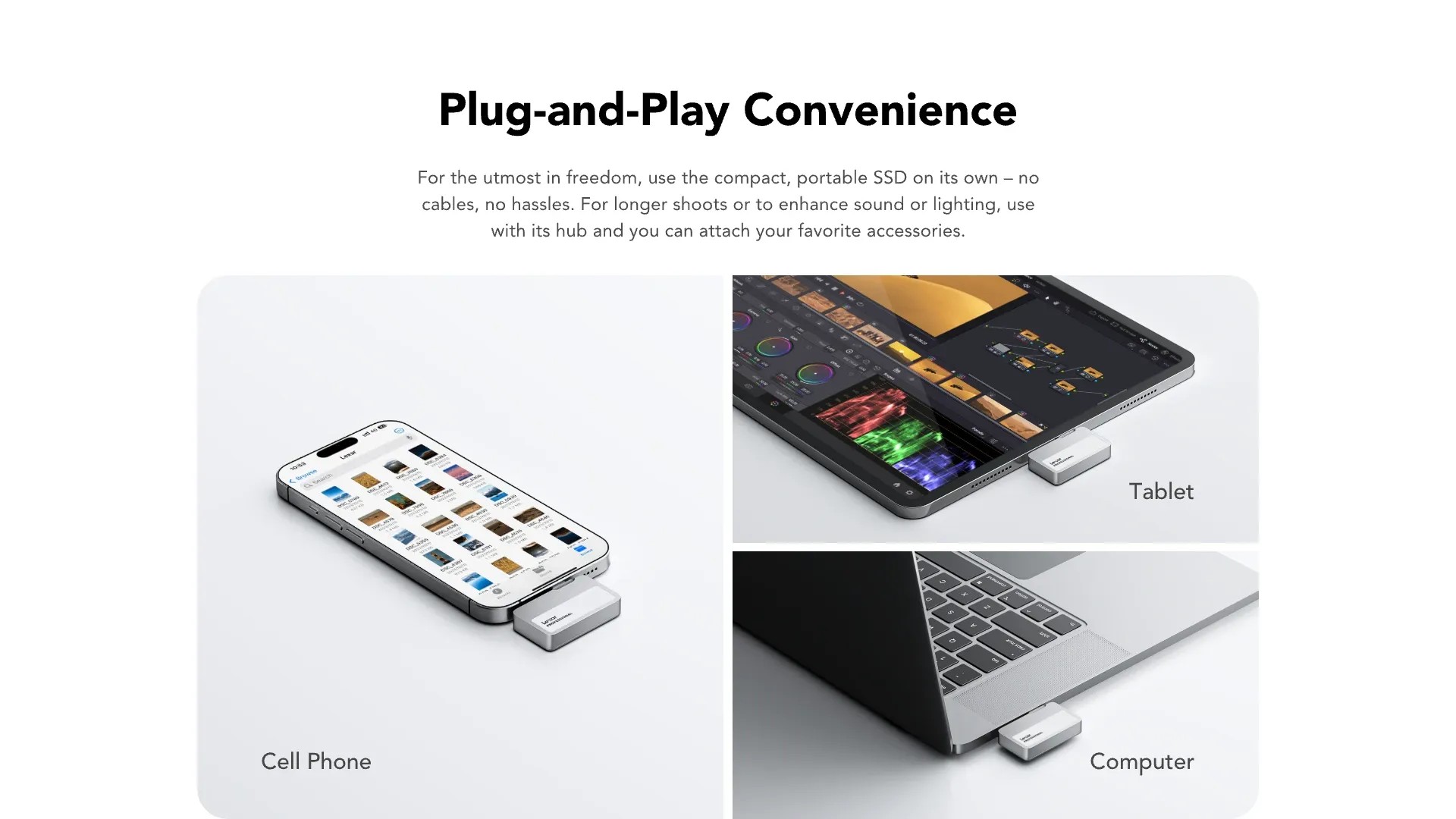 - บันทึกวิดีโอ 4K 60fps ที่ราบรื่นไม่มีเฟรมดร็อป เมื่อเชื่อมต่อกับ iPhone 15 Pro / Pro Max หรือ iPhone 16 Pro และ Pro Max