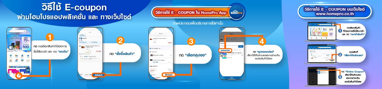 ทุกวันนี้ช่องทางการซื้อขายออนไลน์กำลังเป็นที่แพร่หลาย HomePro จึงตั้งเป้าหมายเพื่อให้ลูกค้าทุกท่านช้อปปิ้งได้อย่างง่ายดาย จากทุกที่ทุกเวลาผ่าน HomePro Application และ HomePro ให้ความสำคัญกับช่องทางการซื้อขายออนไลน์ ดังนั้น HomePro บริการการชำระเงินในหลากหลายช่องทางที่ทั้งสะดวกและปลอดภัยสำหรับลูกค้าทุกท่าน
